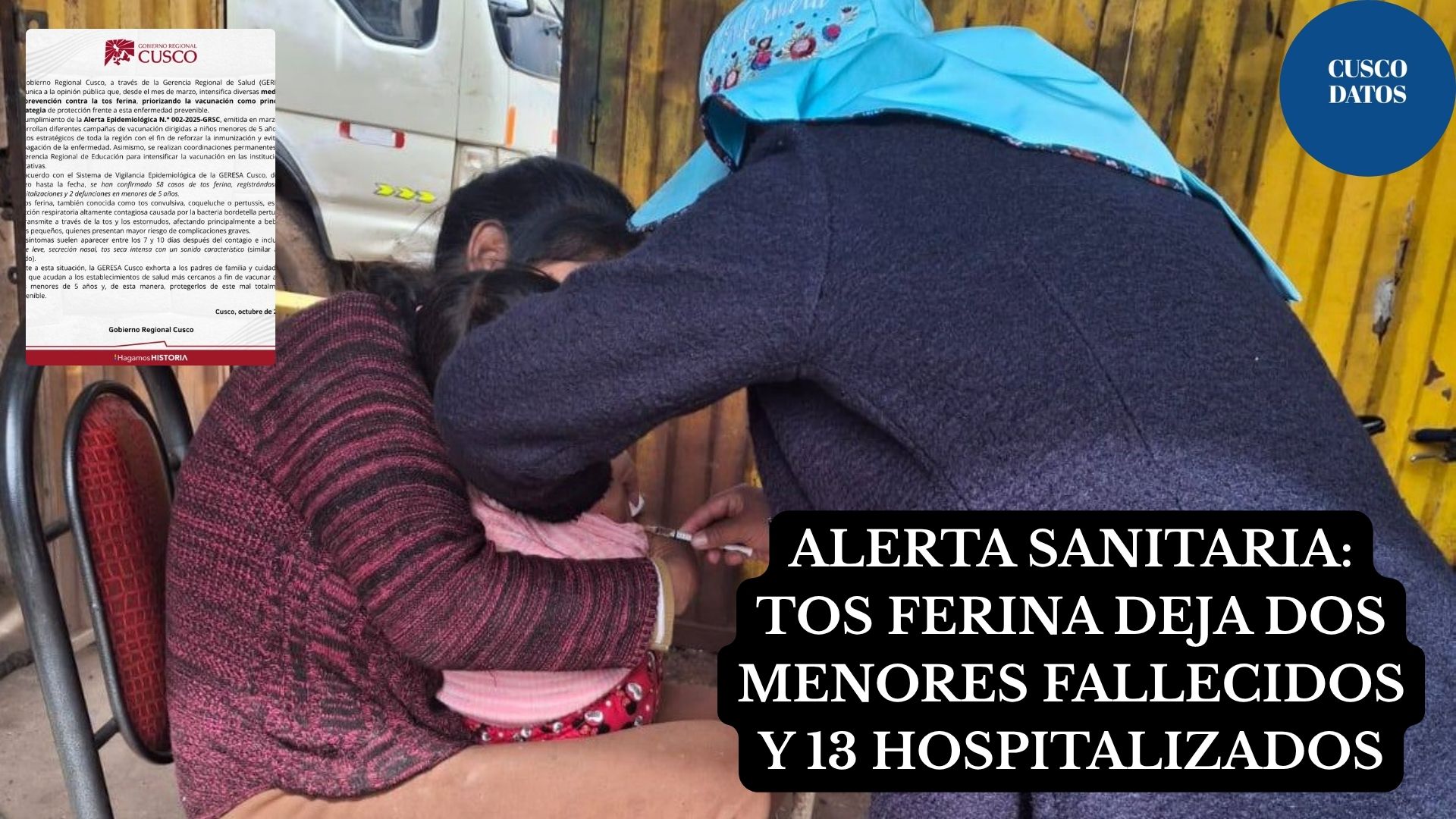 #CuscoDatos. La Gerencia Regional de Salud (GERESA) Cusco confirmó, a través de su Sistema de Vigilancia Epidemiológica, un total de 58 casos de tos ferina en la región, registrados desde el mes de marzo a la fecha. Este brote ha derivado en la hospitalización de 13 menores y, lamentablemente, en el fallecimiento de dos niños menores de 5 años.