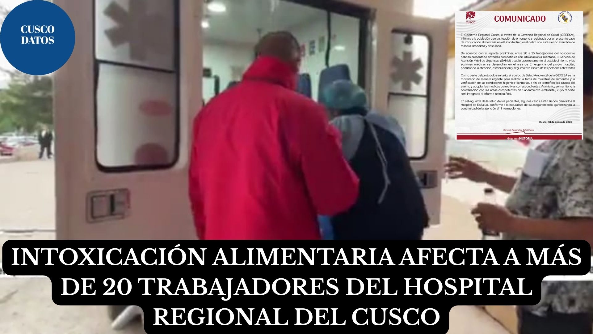 #CuscoDatos. De acuerdo con el reporte preliminar, entre 20 y 25 trabajadores del Hospital Regional del Cusco presentaron síntomas compatibles con una intoxicación alimentaria. Según la declaración de una de las afectadas, el posible origen estaría en un plato de pescado que consumieron en el almuerzo.