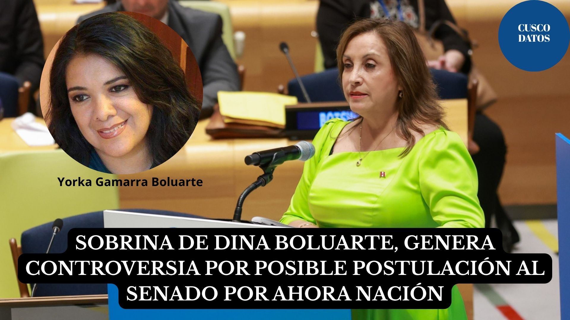 #CuscoDatos. La sobrina de la presidenta Dina Boluarte, Yorka Gamarra Boluarte, militante del partido Ahora Nación —que lidera el exrector de la Universidad de Ingeniería (UNI), Alfonso López Chau—, postularía al Senado en las Elecciones Generales de 2026. Este hecho ha generado diversos cuestionamientos hacia la organización política, al punto que una precandidata anunció su renuncia debido a la presencia de la familiar de Boluarte, pero luego borró su publicación en Tik Tok.