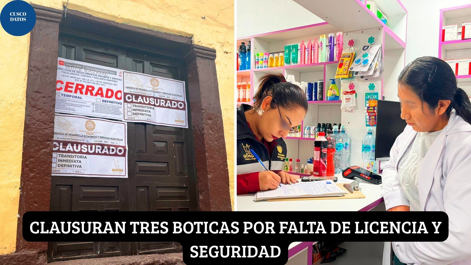 Clausuraron los establecimientos “Multiservicios Zúñiga” y dos “Multiservicios Huascarán” por no contar con licencia de funcionamiento ni el Certificado de Inspección Técnica de Seguridad en Edificaciones (ITSE). Además, se incautaron medicamentos sin registro sanitario.