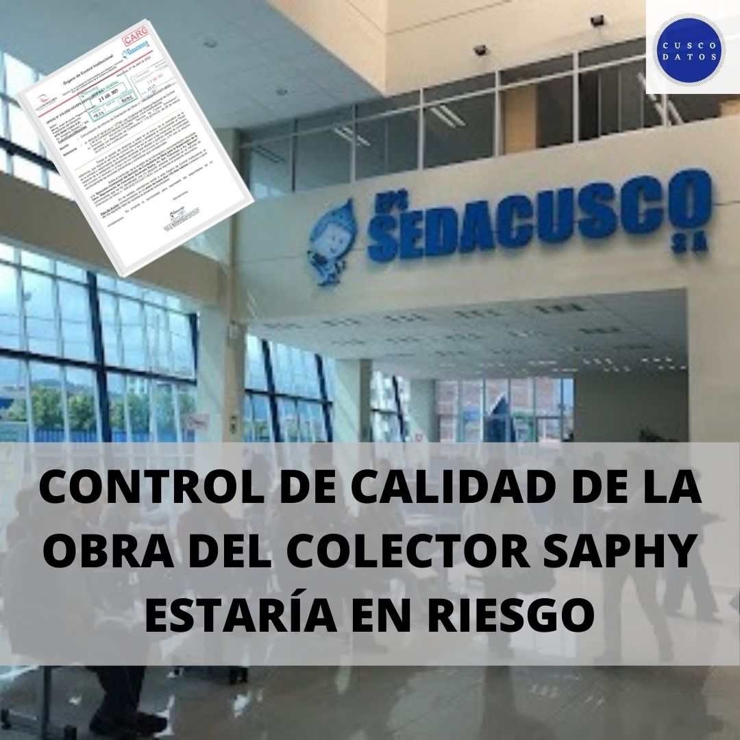 #CuscoDatos. La empresa Seda Cusco S.A., tiene a su cargo la supervisión de la obra “Mejoramiento de colectores quebrada Saphy, Av. Sol, Tullumayo y Av. Ejército”, y la Contraloría advierte que el control de calidad del proyecto se pondría en riesgo por la falta de profesionales que se requiere para la supervisión.