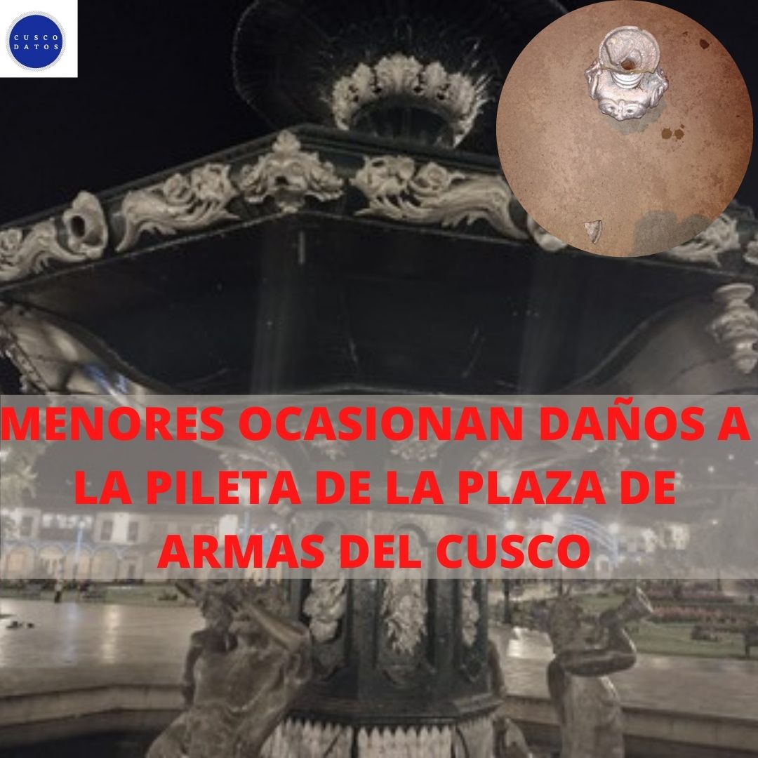 #CuscoDatos. Tres menores de 12 y 13 años que causaban daños a la pileta central de la Plaza de Armas fueron puesto bajo custodia, hecho registrado en horas de la madrugada del lunes 10 de enero, reportó la policía.