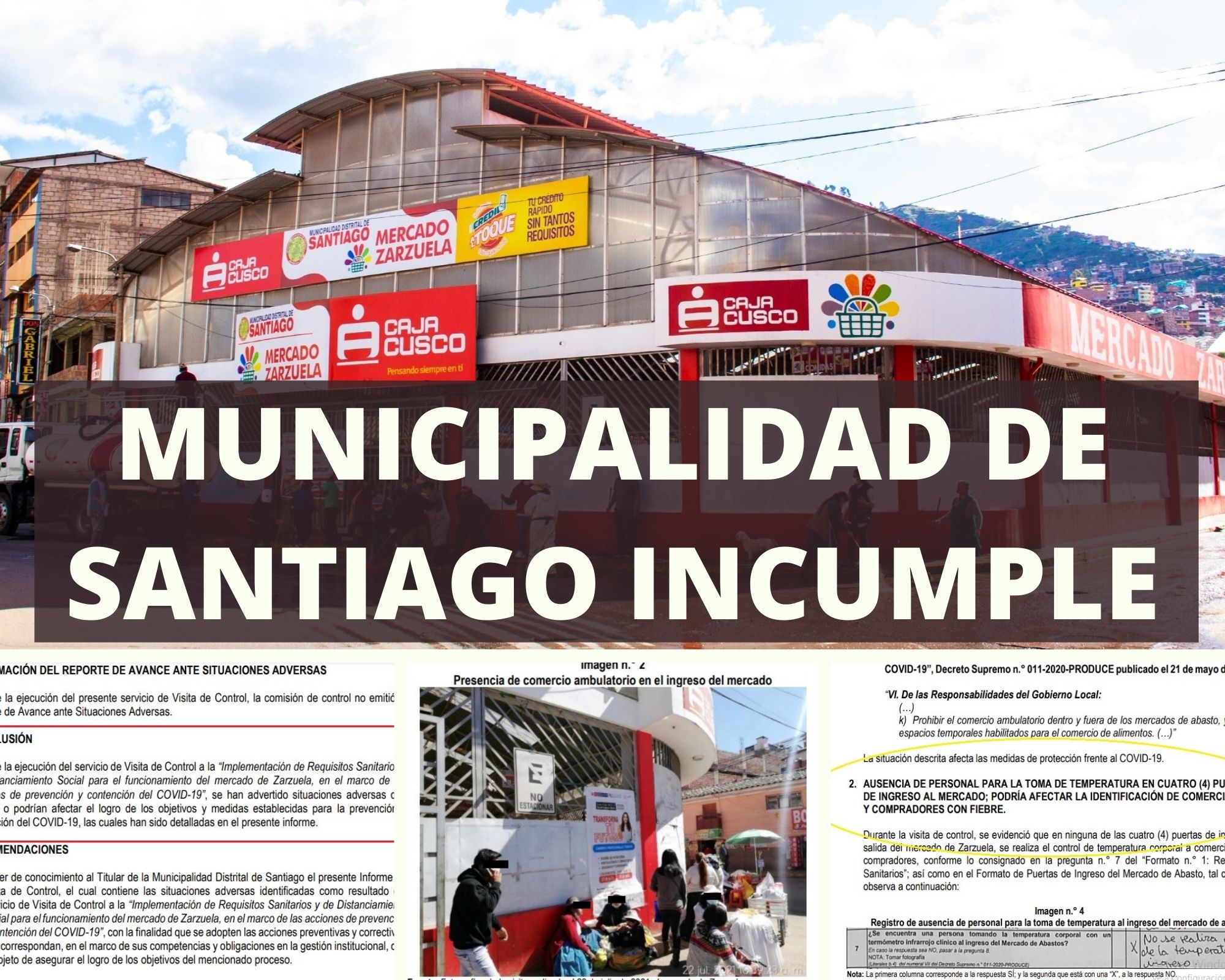 #Prevención. La Contraloría General de la República advierte que la Municipalidad Distrital de Santiago incumple con las acciones de prevención y contención contra el coronavirus en el mercado de Zarzuela, lo cual expondría la salud de la población y de los comerciantes.