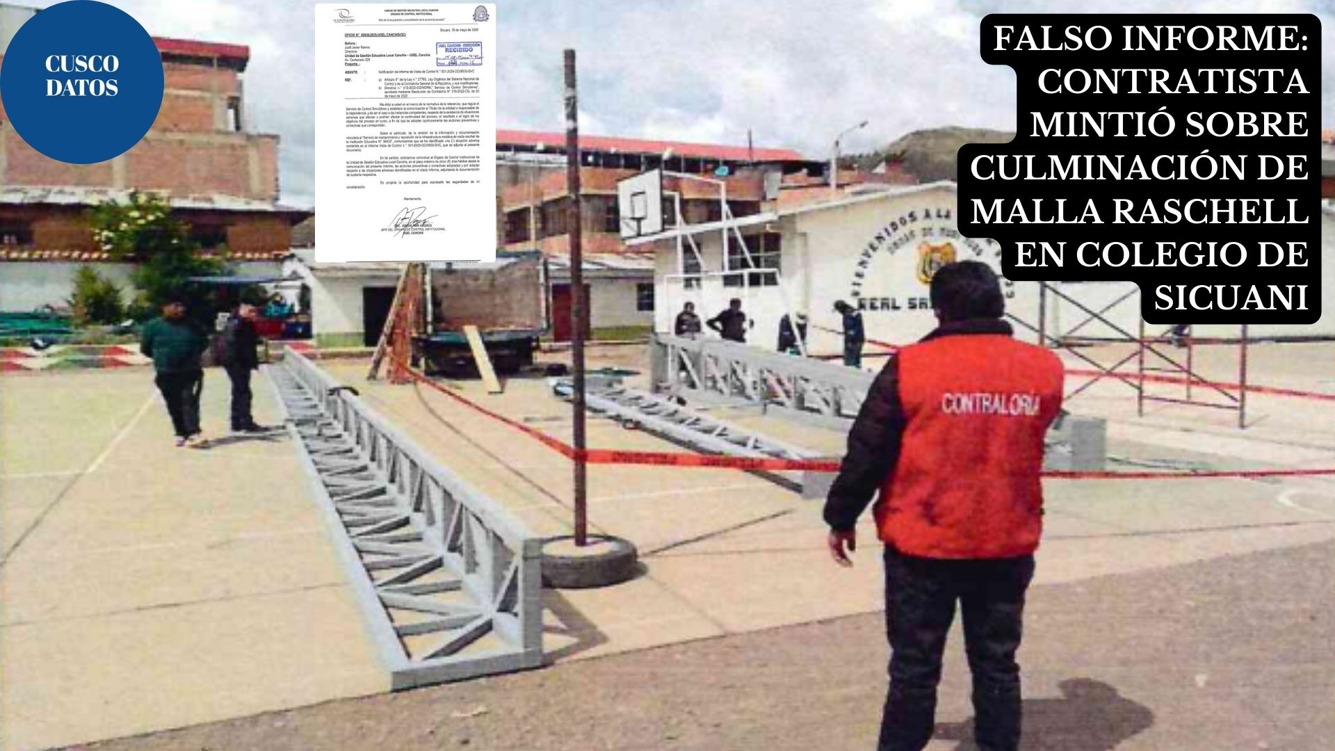 #CuscoDatos. Una empresa contratada por la Unidad de Gestión Educativa Local (UGEL) de Canchis para el mantenimiento y reposición de la infraestructura metálica de la malla Raschell en la Institución Educativa N° 56433 “Real Santa Cruz de Sicuani”, informó haber culminado los trabajos, pero una verificación de la Contraloría General reveló que los trabajos aún estaban en curso.
