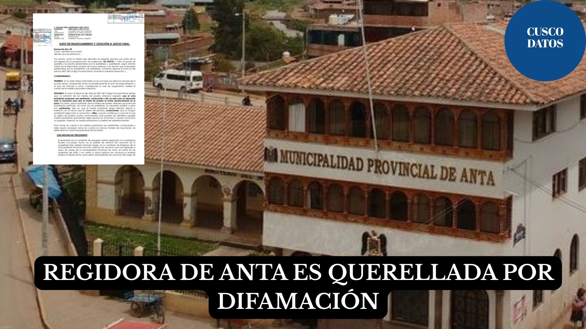 La nueva querella surge después de que la regidora Mamani Apaza brindara una entrevista a un medio de comunicación de Anta. Según el abogado Cusirimay, en dicha declaración la autoridad le atribuyó "hechos, cualidades y conductas que el recurrente no ha realizado ni tiene", actuando con "intención dolosa de dañar mi imagen como profesional del derecho".